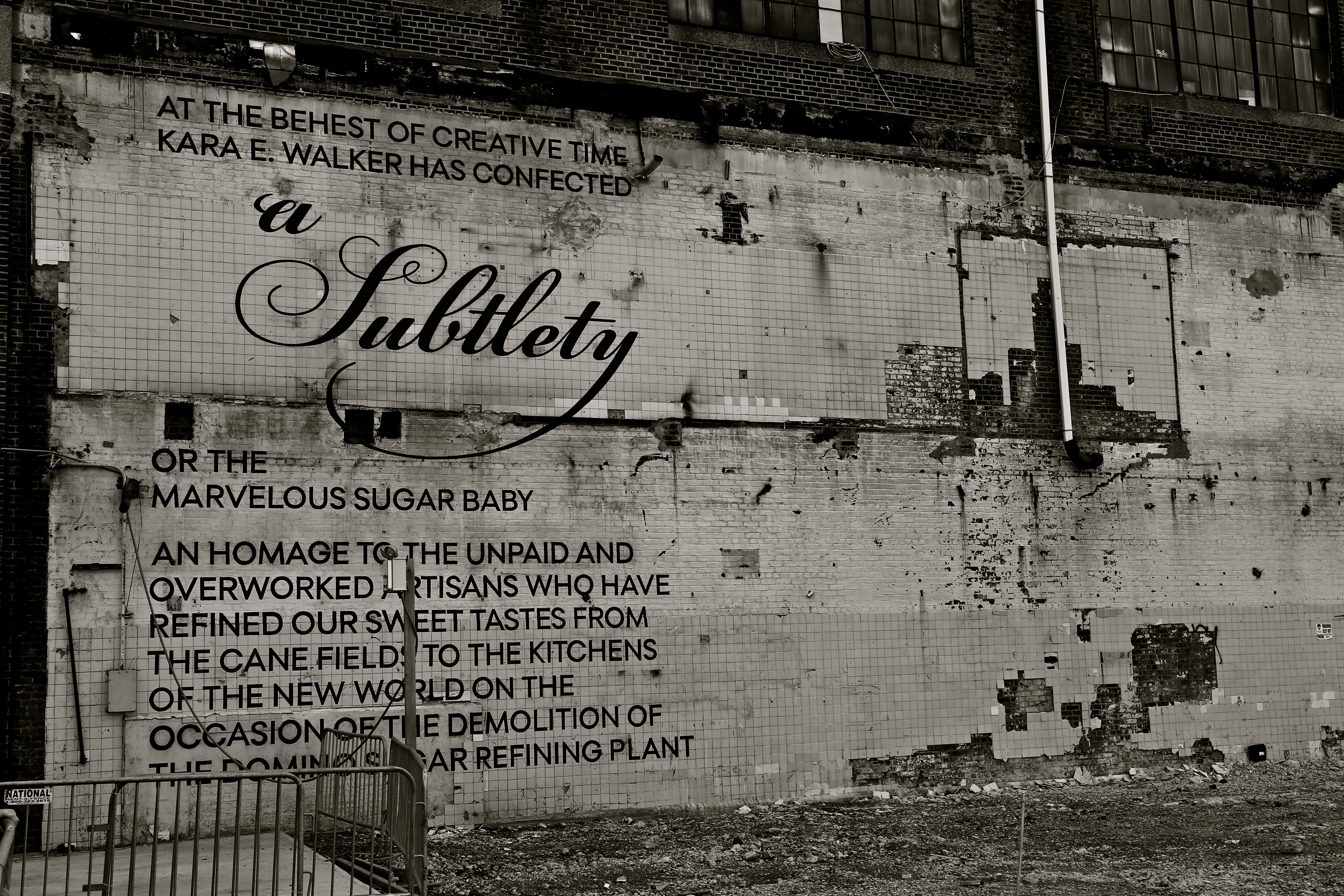 Although the gigantic piece is alluring, the decrepid remains of the factory are equally enthralling. The distinct smells of sugar and molasses envelope as you enter the cavernous space.